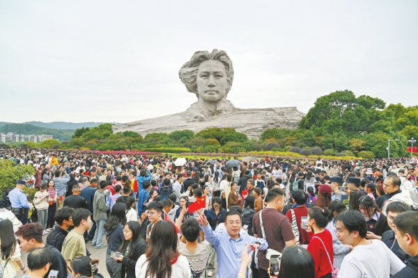 10月1日,游客在长沙市橘子洲景区观光游玩。当天是国庆假期第一天,全省各地节日氛围浓厚,众多市民和游客纷纷外出游玩,欢度国庆,乐享假期。湖南日报全媒体记者 郭立亮 摄
