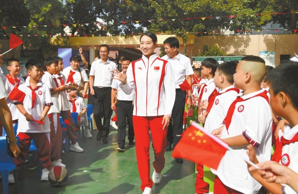 9月30日上午,阳光与微风正好。长沙开福区麻园岭小学迎来了一位特别的校友——她是“麻小骄傲”,她是巴黎奥运会花样游泳冠军张雅怡。这里是体育湘军“四进”活动的现场,青春与梦想在这里撞了个满怀。