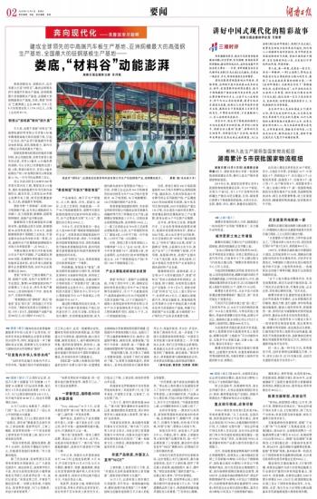 娄底“材料谷”已建设薄板产业园、硅钢产业园、电机产业园等多个专业园区,集聚108家钢铁新材料产业链规上工业企业,消化本地产量50%以上的原料钢用于汽车、家电等生产,实现材料增值。
