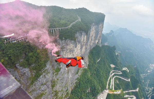 9月中旬,第十届翼装飞行世锦赛在张家界天门山景区举行,11个国家的16名翼装飞行运动员决战巅峰,引来众多海内外媒体关注。天门山的绝美景色,也随着画面传播到全世界。