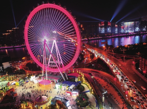 10月5日晚,衡阳市廻雁峰旅游区人流如织。曹正平 摄(湖南图片库)