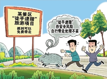 游客在景区猎场徒手抓“野猪”“野兔”“山鸡”,抓到还可以带走。近日,四川绵阳市北川羌族自治县一景区“徒手逮猎”旅游项目在网络上受关注,引发质疑。当地相关部门负责人表示,将协同相关部门对该项目的安全性,以及检疫、宰杀的规范性进一步监管。