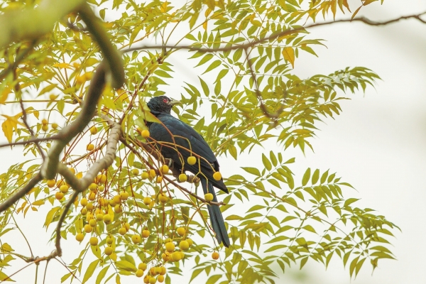 10月19日,常德市太阳山,噪鹃栖息在枝叶中。噪鹃雄鸟通过叫声来吸引雌鸟,鸣声清脆而响亮,被称为鸟界的“大嗓门”。噪鹃产卵时会四处寻找符合要求的巢穴,将鸟蛋产在其他鸟巢里,采取产卵寄生的方式,由其他鸟代孵代育。湖南日报全媒体记者 张京明 摄