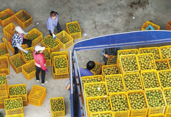 10月20日,通道侗族自治县万佛山镇石壁村,村民在分装销往外地的罗汉果。近年来,该县不断优化农业产业结构,针对市场需求发展“订单农业”,持续带动农业增效、农民增收。李尚引 摄(湖南图片库)