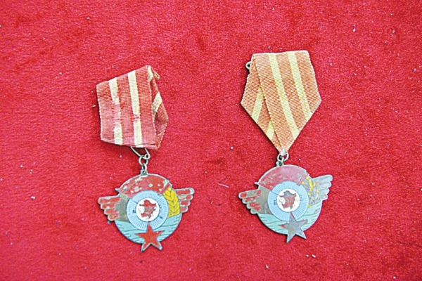 湖南革命军事馆工作人员在对征集来的文物进行鉴选时,发现从湖南省军区第二离职干部休养所岳阳服务站老人高英芬家中征集来的一组12枚勋章中,有两枚一模一样的铜制解放东北纪念章。