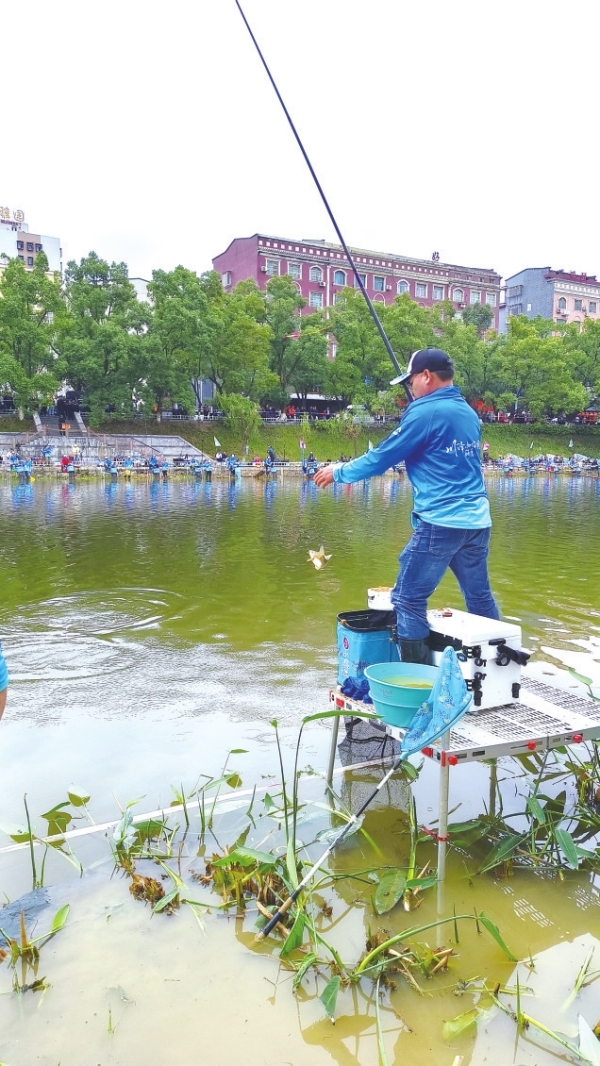 微风轻拂,柳丝轻舞,长安河畔,一排排垂钓者静坐如松,手执鱼竿,鱼钩随着一抛一坠轻盈入水,又在一收一扬间,带着鱼儿跃出水面,激起层层涟漪。
