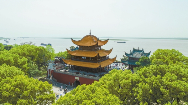 正观研檐柱落款长庚李白书的对联:“水天一色,风月无边”,身边中年男人与朋友的话悄然入了耳,应是陪同外地来的朋友,他轻声做介绍:现在的天高水清是近年状态,洞庭湖的淡水湖泊生态系统和生物多样性,成为东北亚迁徙候鸟的重要越冬地,也是麋鹿、江豚等野生保护动物的繁衍、生息地。正听着,一群白鹭从岳阳楼前飞过,我一声惊呼,中年男人对我的少见报以宽容,偏头告诉我,如果沿着洞庭湖大堤散步,还可遇见别的候鸟在堤两侧的采桑湖和大小西湖起落。待冬季,鸟类更多。