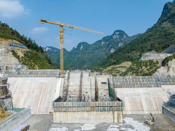 11月3日,吉首市大兴寨水库工程建设现场,工人在忙碌作业。连日来,建设者利用晴好天气加紧施工,确保工程进度稳步推进。大兴寨水库工程是2022年省政府确定的重点建设项目之一,也是2022年国家部署推进的55项重大水利工程之一。彭璟 摄(湖南图片库)