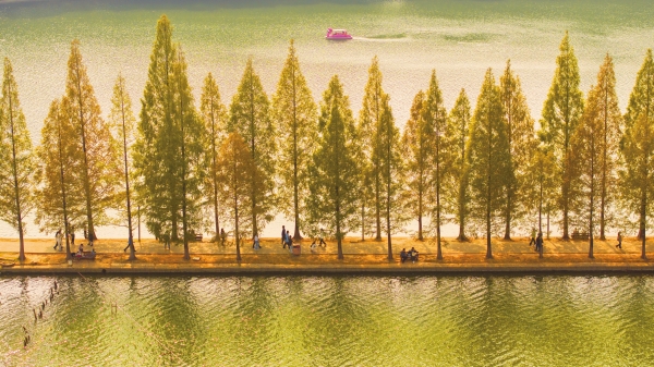 11月5日,湖南烈士公园年嘉湖水杉林被秋意染上一层金黄。 |