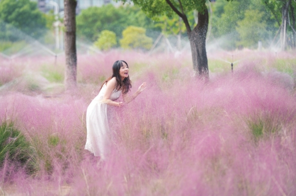 10月12日,湖南中医药大学校园内成片的粉黛乱子草盛开,似粉色云雾。 |