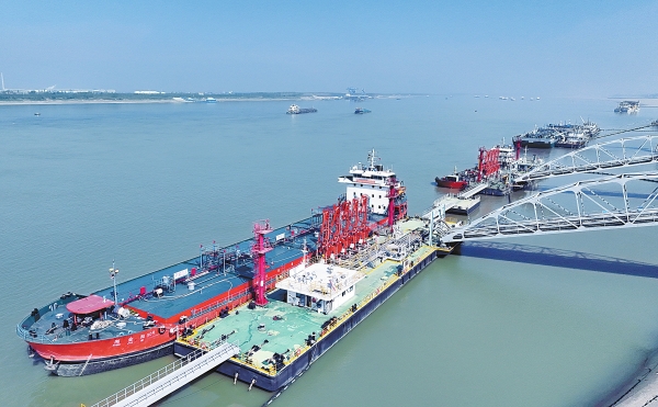 11月13日,湖南石化港口部陆城片区码头正在装卸汽油、柴油、航煤、石脑油等,为下游市场保供清洁油品。初冬时节,中石化湖南石化公司针对当前长江进入枯水期,水位较近年同期均值偏低的情形,强化港口部码头低水位运行管理,保障货船安全航行,确保各类物料安稳接卸。