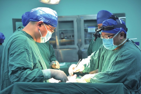 经过半个月的详细检查和术前预处理,11月5日,母子俩被送入手术室。肾移植科杨铁、熊烈、丁寿宁等组成的移植专家团队进行取肾和移植,血管外科主任熊建明的血管团队进行动脉瘤处理。经过长达8个小时的取肾、修补和移植三个手术,最终成功将母亲不同血型、修复后的肾脏移植给了儿子。