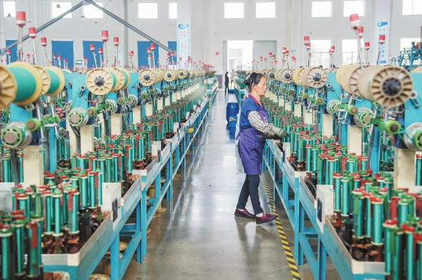 11月13日,沅江市湖南鑫海股份有限公司生产车间,工人在生产线上忙碌。近年来,该公司响应长江流域重点水域十年禁捕政策,依托多年来制造渔网的基础和经验优势,从生产渔网到生产绳网,顺利实现向非渔业用网领域转型升级。