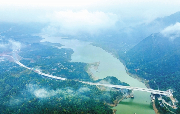 11月19日,石门县仙阳湖,正在建设中的炉慈高速跨湖大桥犹如长虹飞架。炉(红山)慈(利)高速是国家高速路网重要干线G59呼(和浩特)北(海)高速的组成部分,依次连接长江三峡、国家级自然保护区壶瓶山、世界自然遗产张家界,预计2025年通车。