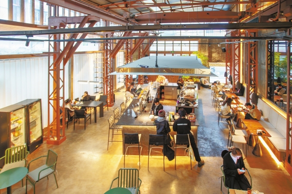 11月19日,长沙市雨花区侯家塘街道爱民里改造项目,游客在装饰一新的咖啡店里消费。该项目前身为长沙市纺织机械厂,建于20世纪50年代,见证了湖南纺织工业发展历史。