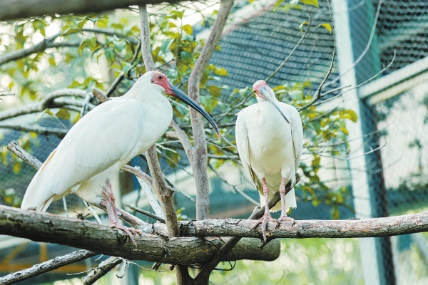 湖南日报11月20日讯(全媒体记者 鲁融冰 通讯员 童忠平 吴清风)今天上午,记者在常德野生动物世界鸟语林看到,6个月大的朱鹮“同同”和“发发”吃完泥鳅、面包虫之后,时而悠闲踱步,时而停歇枝头。一雄一雌,是湖南首次人工孵化的两只朱鹮,目前已经度过幼体期,进入亚成体阶段。