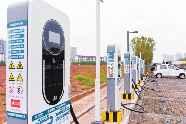 11月20日,澧县澧浦北路,电动车用户在紫玉兰充电站充电。今年,澧县城市建设投资开发有限公司在县城投资增建部分充电设施。当天,一期建成的9个充电站集中投入使用,有效化解了电动汽车用户充电困难,助力新能源汽车应用普及。柏依朴 摄(湖南图片库)