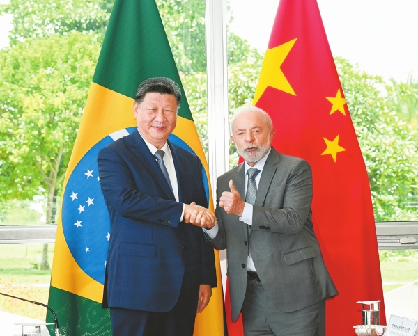 习近平指出,很高兴在中巴建交50周年这个具有重要历史意义的年份访问巴西。刚才卢拉总统为我举行最高礼遇的隆重欢迎仪式,充分体现了对中巴关系的高度重视以及对中国人民的深情厚谊,令我深受感动。中国和巴西是东西半球两大发展中国家。回首过去50年,中巴关系跨越山海,探索出发展中大国相互尊重、互利友好、合作共赢的正确相处之道。巴西是首个同中国建立战略伙伴关系的国家、首个同中国建立全面战略伙伴关系的拉美国家。近年来,在我和卢拉总统战略引领下,两国日益成为命运与共的可靠朋友、共促和平的积极力量,中巴关系正处于历史最好时期,不仅增进了两国人民福祉,也维护了广大发展中国家共同利益,壮大了全球南方的力量和声音,为世界和平稳定作出突出贡献。