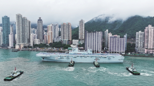 由海军海南舰和长沙舰组成的编队于11月21日上午抵达香港,开始为期5天的访问活动。21日晚,编队在海南舰举行甲板招待会。甲板招待会是海军舰艇编队访问香港的一项重要活动。伴随着《茉莉花》《我爱你中国》《我爱这蓝色的海洋》等精彩纷呈的文艺演出,海军舰艇编队官兵与在场嘉宾进行交流,现场氛围热烈融洽。据悉,访问香港期间,编队官兵将与港澳市民和驻香港部队开展多项交流活动,海南舰和长沙舰还将举行为期3天的舰艇开放活动。图为当日,海军海南舰在香港招商局码头顺利靠泊。