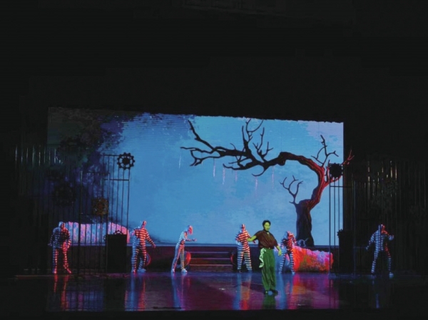 演出从5位陌生人在一个超现实空间中的纠葛开始,在极端环境背景下展开了“生存游戏”。这更是一次深刻探讨人与环境资源关系的直白审判,借此映射人类在生态环境中的荒诞行径,讽刺现代社会的诸多弊端。舞台呈现上,导演曾敏在视觉和叙事上交织了魔幻和现实,嵌入AI技术,在“习以为常”的浓雾中,拨云见日般寻找“真实”的世界,创作出一种“新幻想现实主义”风格。