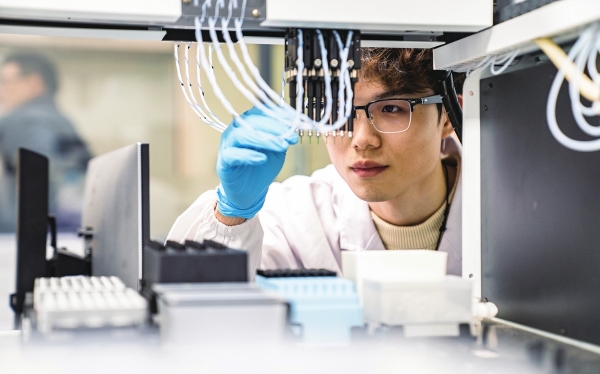 11月23日,华智生物技术有限公司,实验人员在进行生物技术与数据技术(BT+DT)的融合实验。该公司是由中信农业联合行业内十余家龙头企业及专业机构共同出资4.74亿元组建的生物种业平台型企业,拥有国际一流的分子检测和生物信息分析平台,具备雄厚的生物技术与数据技术实力。