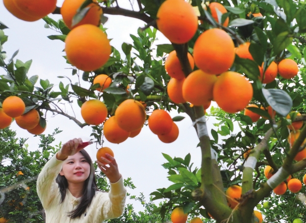 11月24日,衡南县花桥镇源氏农林柑橘种植基地,游客在采摘脐橙。时下,该基地种植的500余亩砂糖橘、脐橙、葡萄柚陆续进入成熟期,吸引大量游客来此采摘、购买。