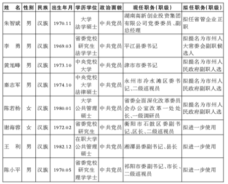 为了加强对干部选拔工作的监督,提高识别和任用干部的准确程度,现对省委常委会会议研究决定的下列拟任人选进行任前公示: