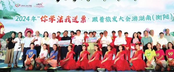 2024年,省司法厅联合相关部门和市州先后开展“走,去永州!你学税法我送票”“你学法我送票·跟着旅发大会游湖南(衡阳)”“你学法我送票进高校”等系列公益普法活动,共吸引省内外超320万余人次参与其中,共送出7000余张“法治惠民文旅卡”以及免费星级酒店(高档民宿)住宿、平板电脑等奖品,价值超1000万元,拉动全省消费2亿余元,实现普法宣传与文化旅游及城乡治理深度融合、共赢发展。
