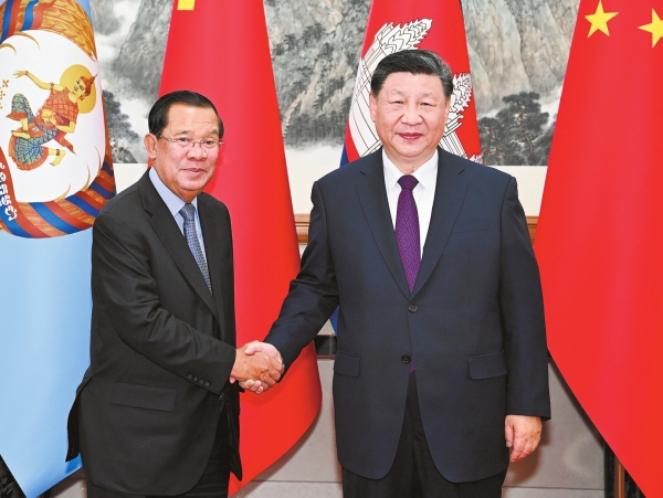 习近平指出,当前,国际形势变乱交织,全球性挑战层出不穷,考验着各国的应对和选择。中柬两国都致力于做世界的和平力量、发展力量、进步力量。中方将继续支持柬埔寨在国际和地区事务中发挥更大作用,壮大“全球南方”力量,支持东盟坚持战略自主,维护中心地位,坚决反对外部势力将冷战思维引入本地区,坚定不移推动东盟一体化和共同体建设。中方愿同柬方坚定道不改、志不变的决心,增强底线思维,加强协作和配合,共同应对各种风险。