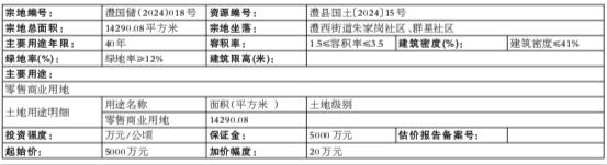 澧国储(2024)018号:1、该宗地系按现状供地,由竞买者自行现场踏勘确认;2、该宗地建筑实施应按(澧)自规条字202429规划条件通知书要求执行;3、价款缴纳:一次性缴清;4、如有超出挂牌价的溢价部分自出让合同签订后一个月内缴清;5、报价内涵:成交价款不含契税和交易服务费。