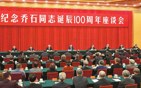 新华社北京12月16日电 中共中央16日上午在人民大会堂举行座谈会,纪念乔石同志诞辰100周年。中共中央总书记、国家主席、中央军委主席习近平发表重要讲话强调,现在,全党全国各族人民正满怀信心全面建设社会主义现代化国家、全面推进中华民族伟大复兴,一代代中国共产党人为之奋斗的美好理想正在一步步实现。我们要高举中国特色社会主义伟大旗帜,牢记党的初心使命,同心同德、奋发进取,不断创造无愧于历史、无愧于时代、无愧于人民的新业绩。