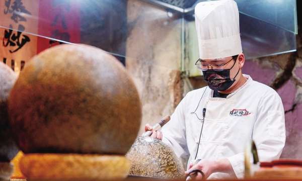 一个传统麻球,从黄色、红色、绿色到黑金色,杨勇把它教会每一个厨房师傅。老手学习麻球手法至少10天,而新手则必须从滚气球开始练手。把儿时吃过的三角糕翻新,变成了新菜庆铃白凤糕;把鸡放进汽锅里烹煮,用黑豆花提色;把重庆板鸭用乌龙茶梗进行酥炸,茶香鸭香把人香迷糊了……