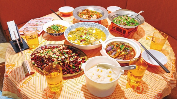 红油耳片、火爆猪肚、灯影牛肉、宫爆肉丁、麻辣香水鱼……这些热辣火爆的川菜让人巴适得板(四川方言,非常好的意思),齿颊生香。