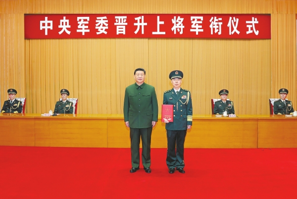 习近平颁发命令状并向晋衔的军官表示祝贺