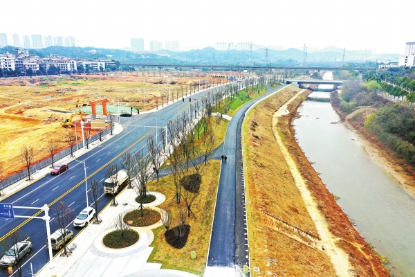 12月23日,长沙市望城区小河路南延(腾飞路-石长铁路段)及堤岸综合整治工程已基本完工,进入收尾阶段。该项目集道路、桥梁、景观、堤防工程于一体。