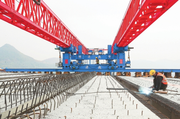 12月23日,新田县龙泉街道刘家桥村桂(东)新(田)高速桂阳至新田(宁远)段刘家桥特大桥施工现场。连日来,桂新高速的建设者们抢抓晴好天气,奋力冲刺目标任务。