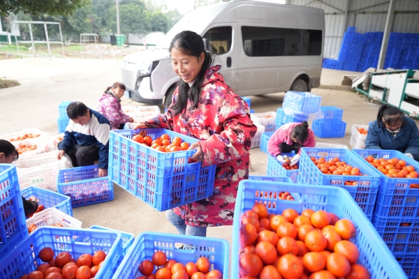 12月13日,在资阳区长春镇李家坪村的乡村振兴致富车间,村民们正在给柑橘打包,销往长沙等地。