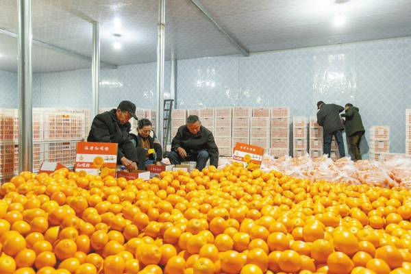 12月18日,临澧县四新岗镇众胜村,村民在分装脐橙准备发往全国各地。益农信息社为该村新建的服务站点,通过积极对接平台资源帮助村民打通脐橙销售渠道。在今年“献策湖南”金点子征集活动中,有建议人提出,充分利用信息技术让农产品销售搭上电商快车。