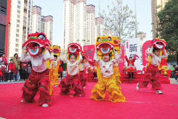 2024年12月31日,新田县叠翠幼儿园,小朋友在“庆元旦迎新年”亲子游园活动中表演舞狮。刘贵雄 付慧敏 摄影报道(湖南图片库)