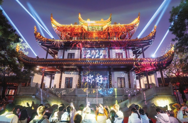 2025年1月1日凌晨,长沙天心阁举办“国潮破晓迎新年”活动,市民和游客齐声倒计时迎接新年。湖南日报全媒体记者 辜鹏博 摄