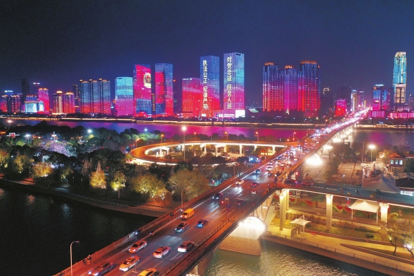 1月10日是第五个中国人民警察节。当晚,一场主题灯光秀在长沙湘江两岸燃情上演,“对党忠诚、服务人民、执法公正、纪律严明”等字样在楼宇幕墙上循环播放,警徽、警旗等元素与万家灯火交相辉映,为人民警察献上美好的节日祝福。