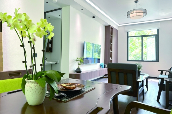 步入信和苑小区,幸福生活的愿景照进现实。两套房子相对为邻,一套注重老年人的需求,适老化改造设计处处贴心;另一套关注年轻人的需求,智能家居设计深入生活细节,为旧改“老房子”提供不同的个性化样板。