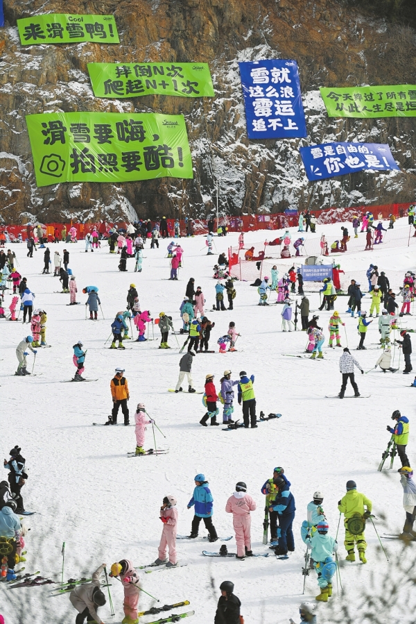 1月11日,第二届长三角滑雪公开赛暨冰雪嘉年华活动在浙江省湖州市安吉县山川乡云上草原滑雪场举行,吸引大批滑雪爱好者前来体验冰雪运动的魅力。图为当日,滑雪爱好者在云上草原滑雪场滑雪。新华社 发