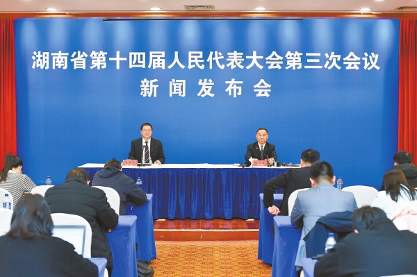 1月13日下午,湖南省十四届人大三次会议举行新闻发布会。省人大常委会副秘书长、省十四届人大三次会议新闻发言人张扬军发布新闻。