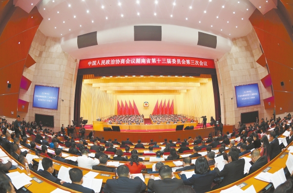 湖南日报1月13日讯(全媒体记者 邓晶琎 陈昂昂)1月13日上午,中国人民政治协商会议湖南省第十三届委员会第三次会议在省人民会堂开幕。来自全省各族各界、各条战线的省政协委员齐聚长沙,积极履行政治协商、民主监督、参政议政职能,为加快实现“三高四新”美好蓝图、奋力谱写中国式现代化湖南篇章尽政协之责、展政协之长、倾政协之力。