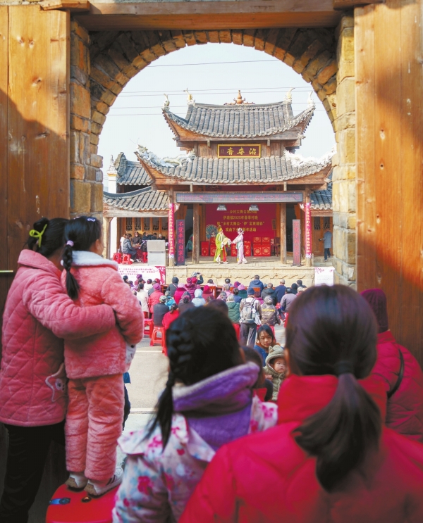 1月15日,永州市冷水滩区伊塘镇长木塘村,演员在表演祁剧《金锁奇缘》。春节临近,该区积极开展文化惠民系列活动,把文艺演出送到群众“家门口”,丰富群众精神文化生活。雷中祥 摄(湖南图片库)