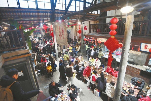 2月1日,游客在休闲聚会、品尝茶点小吃。春节期间,长沙东茅街茶馆举办“东茅街春早——非遗过大年”活动,整合民俗文化、街道邻里文化、市井茶馆文化等,尽显老长沙过年韵味。