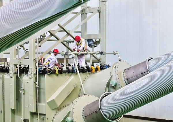 2月4日,工作人员在对“宁电入湘”衡阳站±600千伏高端换流变设备进行附件安装。当天是正月初七,衡阳市各企业开足马力赶订单、忙生产,冲刺“开门红”。
