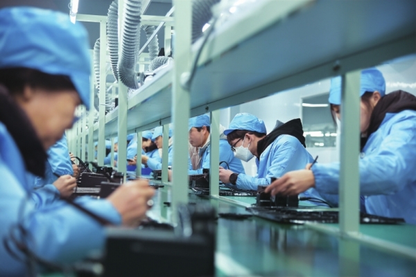 2月11日,郴州市北湖区的湘南光电产业园二期,湖南中沛光电有限公司的生产线已试投产,300多名工人正赶制来自印度的智能手机订单。