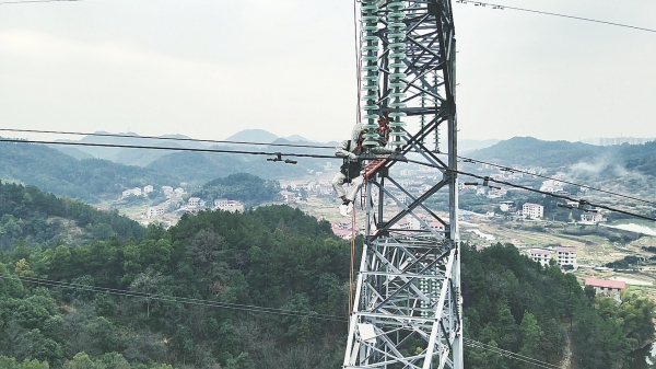 2月11日,娄底市娄星区,国网湖南超高压输电公司员工在处置220千伏吉颜线一处故障,及时消除设备运行隐患。这是该公司春节后开展的首次作业,有效保障了娄底东部地区人民群众节后复工复产顺利进行。